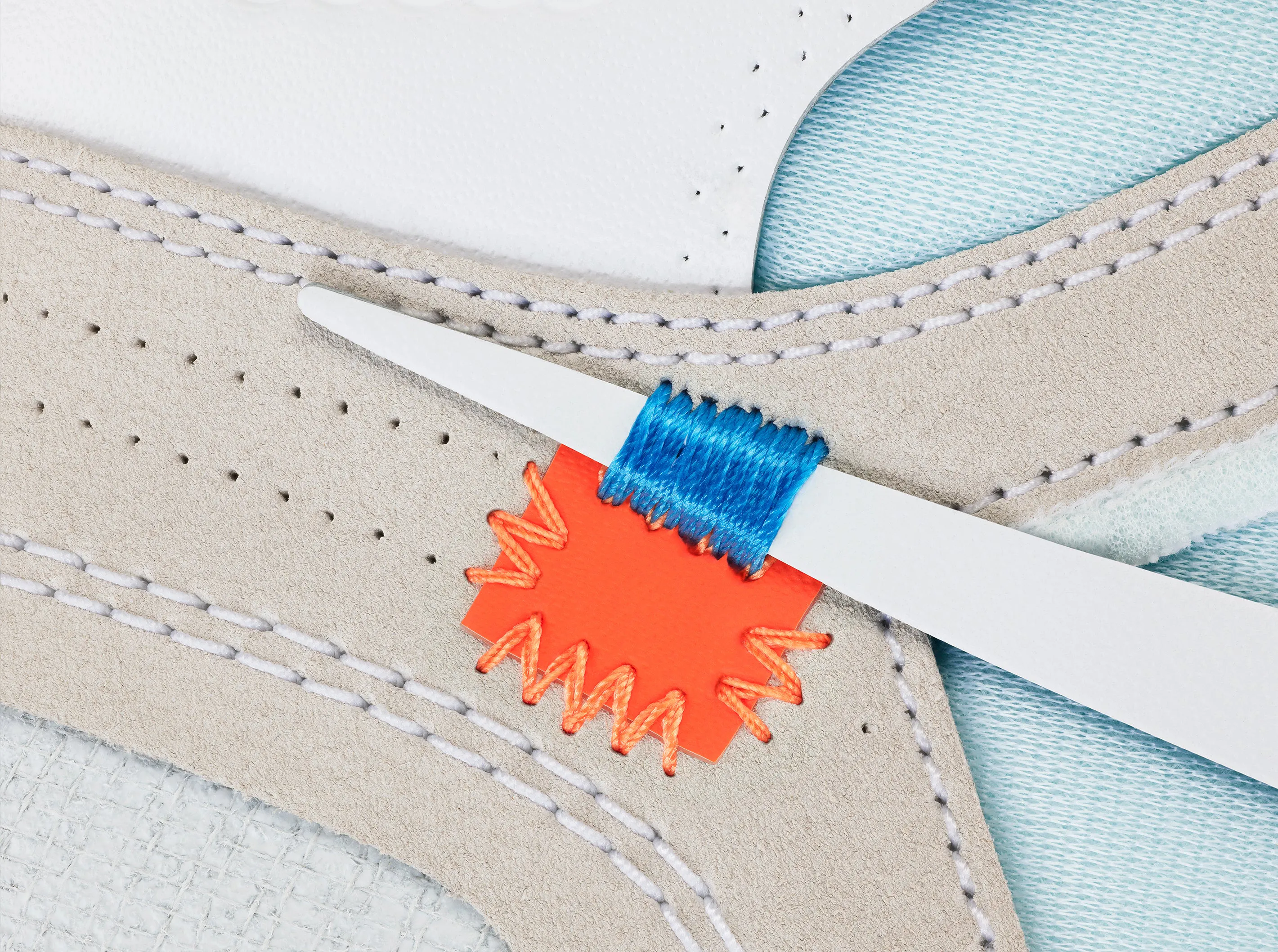 Revealing – to make the hidden visible - became a central pillar of Virgil’s early design language. His work spoke to how things were produced, materially and culturally, and through a set of visual motifs. The Air Jordan 1 High OG X V.A.A. features Virgil’s signature exposed tongue, orange tab on the Swoosh, and black ‘AIR’ lettering printed directly over Nike’s classic air unit on the midsole.